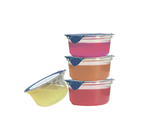 Coupelle de 125g, conditionnée dans un carton de 24 coupelles d’un même parfum.